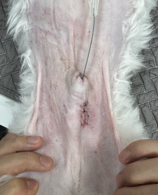 우선 요도카테터를 삽입해 요도에 걸려 있던 결석을 방광 쪽으로 밀어 넣는 응급 처치를 진행했습니다. 이 과정을 통해 요로 폐쇄를 해소하여 소변이 원활히 배출될 수 있도록 했습니다.